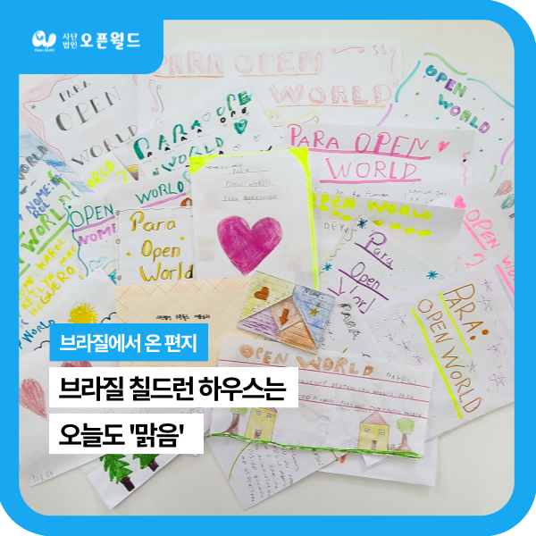 후원자님의 따뜻한 사랑과 관심, 그리고 응원 덕분에 브라질 파벨라 지역의 아이들이 희망을 꿈꾸며 자라나고 있습니다. 오픈월드는 앞으로도 국내외 취약계층 아동을 위해 영양, 교육, 생계, 의료 지원을 멈추지 않을 것입니다. 후원자님과 함께하는 한, 브라질 파벨라 지역 아이들의 표정은 오늘도 ‘맑음’입니다.