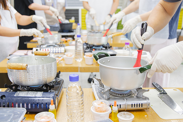이론 교육 다음에는 건강 식재료로 만든 이유식과 간식을 직접 만들어보는 시간을 가졌습니다. 이번 요리실습은 아기들의 철분을 보충하고 면역력을 높여 줄 수 있는 식재료 시금치와 새우를 주제로 ‘시금치닭안심죽’과 ‘새우채소스트링밥전’을 만들어봤습니다.