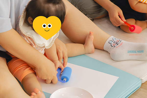 아기 손발에 무해 물감을 롤러로 묻혀 아이가 직접 스케치북에 도장을 찍는 활동으로 촉각 발달을 경험하고 자연스러운 소근육 발달을 이룹니다. 아기들은 자기 손발이 찍힌 도장을 보고 신기해합니다.