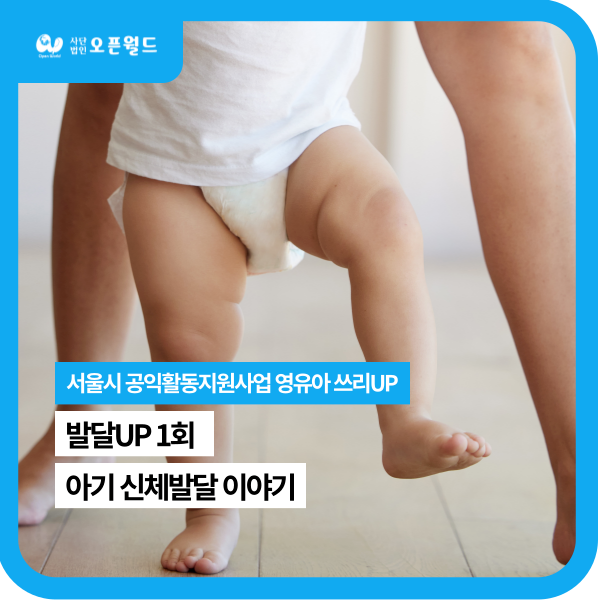 오픈월드는 ‘서울시 공익활동지원사업’ 일환으로 영유아 영양, 건강, 발달을 지원하는 ‘영유아쓰리UP'을 진행하고 있습니다. 이중 영유아 양육자 대상으로 아기 신체발달 이론과 발달 촉진 놀이를 알려주는 ’발달UP'이야기를 전해드립니다.