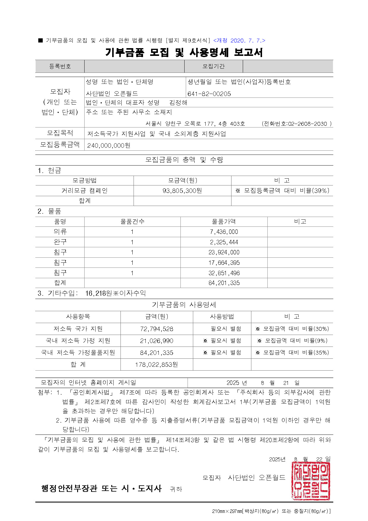 »ç´Ü¹ýÀÎ ¿ÀÇ¿ùµå´Â ¾Æ·¡¿Í °°ÀÌ ±âºÎ±Ýǰ ¸ðÁý ¹× »ç¿ë ³»¿ªÀ» º¸°íÇÕ´Ï´Ù.